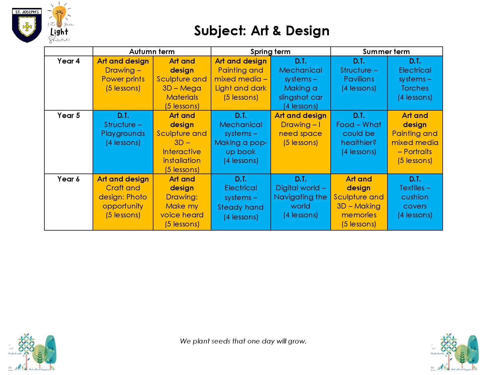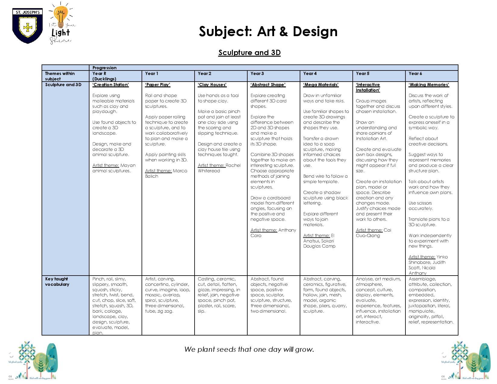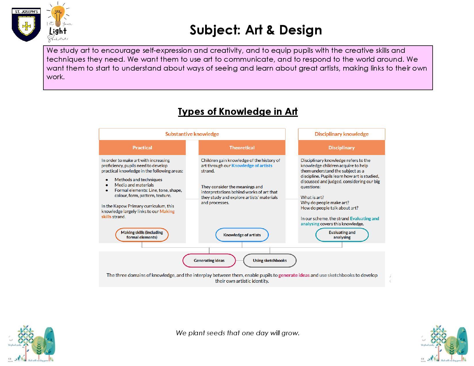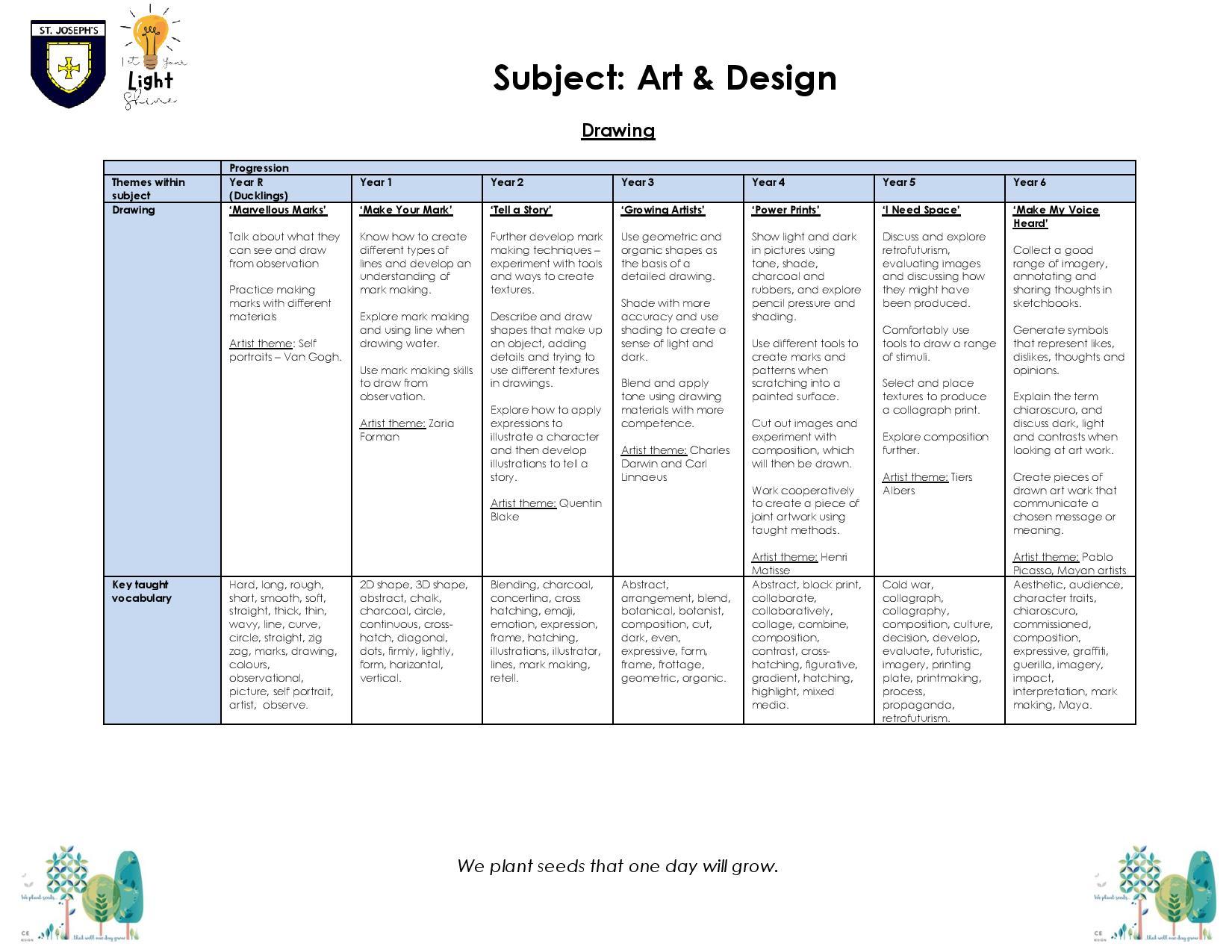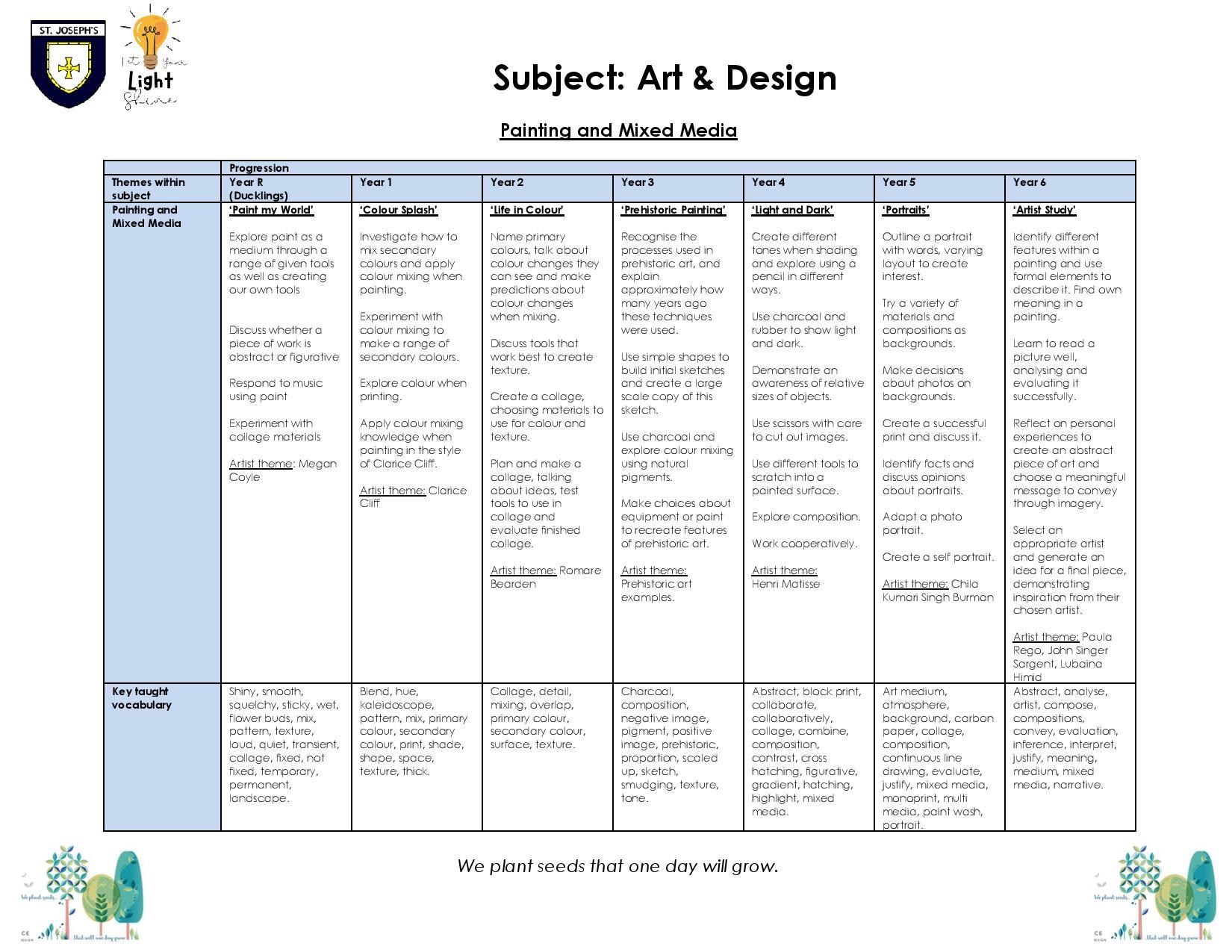 Pablo Picasso once said ‘Every child is an artist. The problem is how to remain an artist once we grow up.’ Arguably, one of the best things about Art and Design is how inclusive this subject can be – there is no right answer and we want every child to feel that they are great artists! At St Josephs, we want all of our children to have a deep appreciation of Art and Design and to approach lessons and experiences with enthusiasm and curiosity.