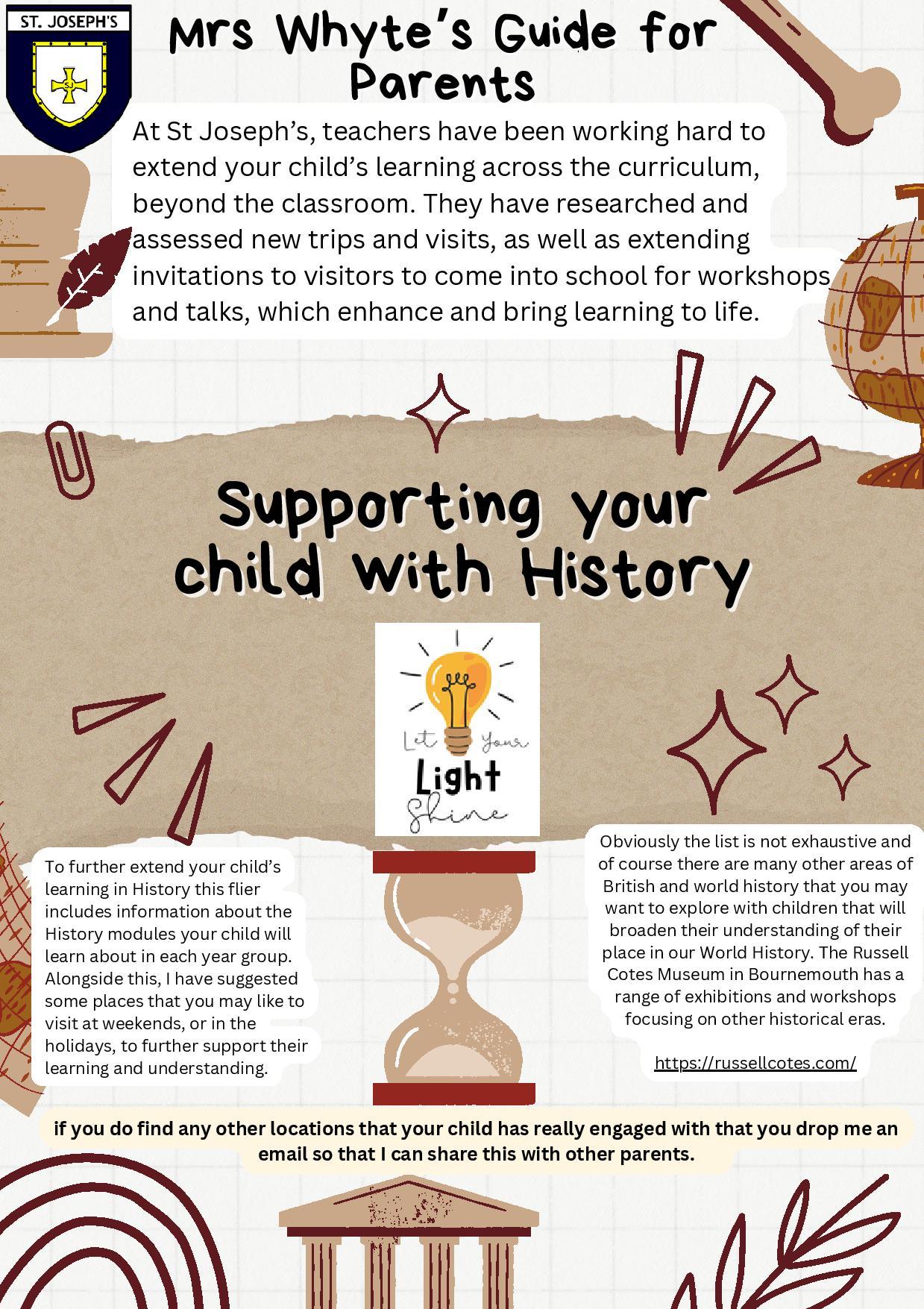 At St Josephs, we aim for a high quality history curriculum which inspires in pupils a curiosity and fascination about Britain’s past and that of the wider world. Our teaching equips pupils with knowledge about the chronology of Britain and how it has influenced and been influenced by the wider world; know and understand about significant aspects of the history of the wider world like ancient civilisations and empires; changes in living memory and beyond living memory; learn about the lives of significant people of the past; understand the methods of historical enquiry and be able to ask and answer questions. We want children to enjoy and love learning about history by gaining this knowledge and skills, not just through experiences in the classroom, but also with the use of fieldwork and educational visits.