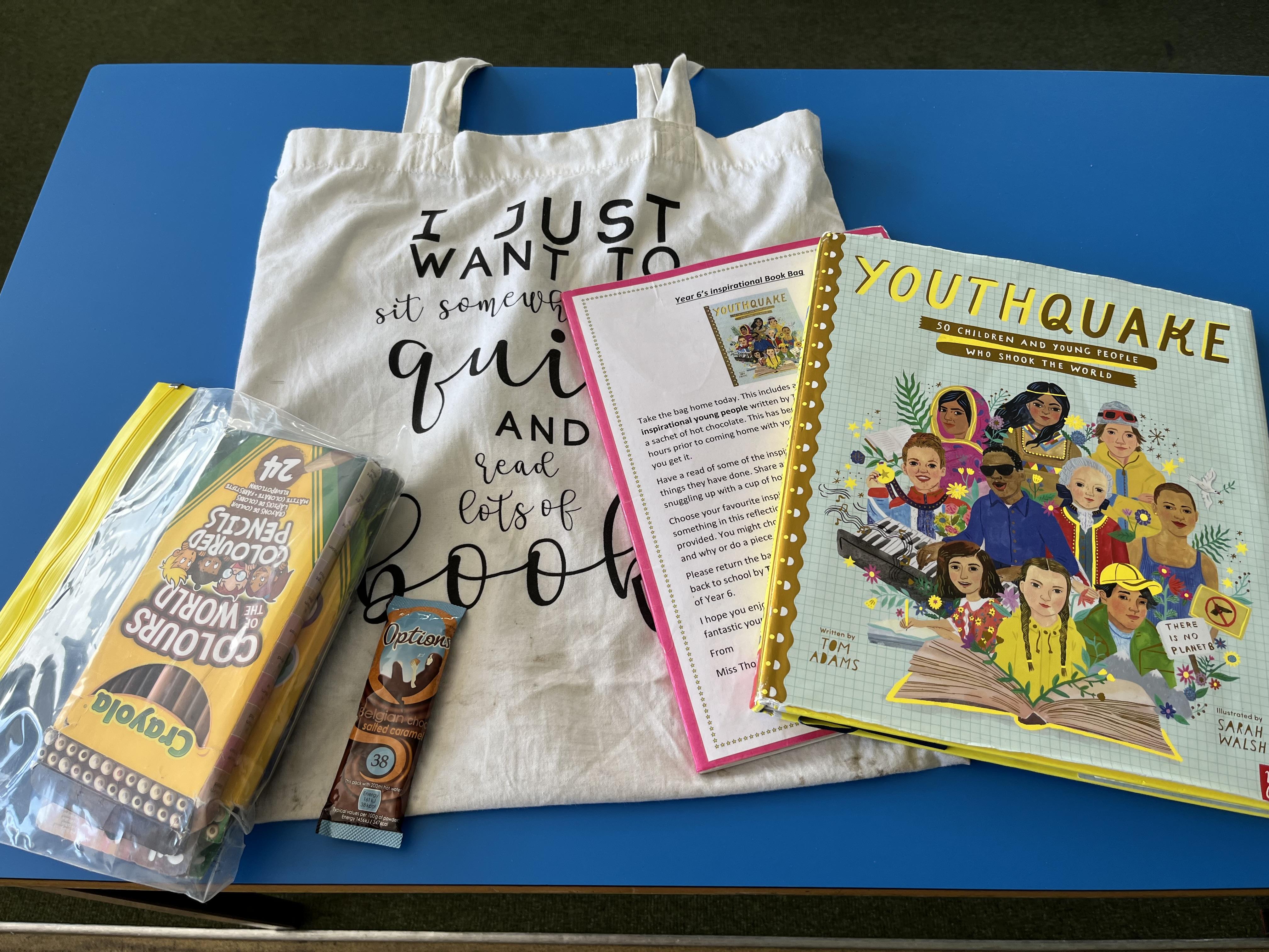 Parents are encouraged to read with their children regularly. As well as their phonics book (KS1), children also take home a reading for pleasure book. Once a week a child from each class takes home a reading bag, which includes a book to share with parents and a hot chocolate.