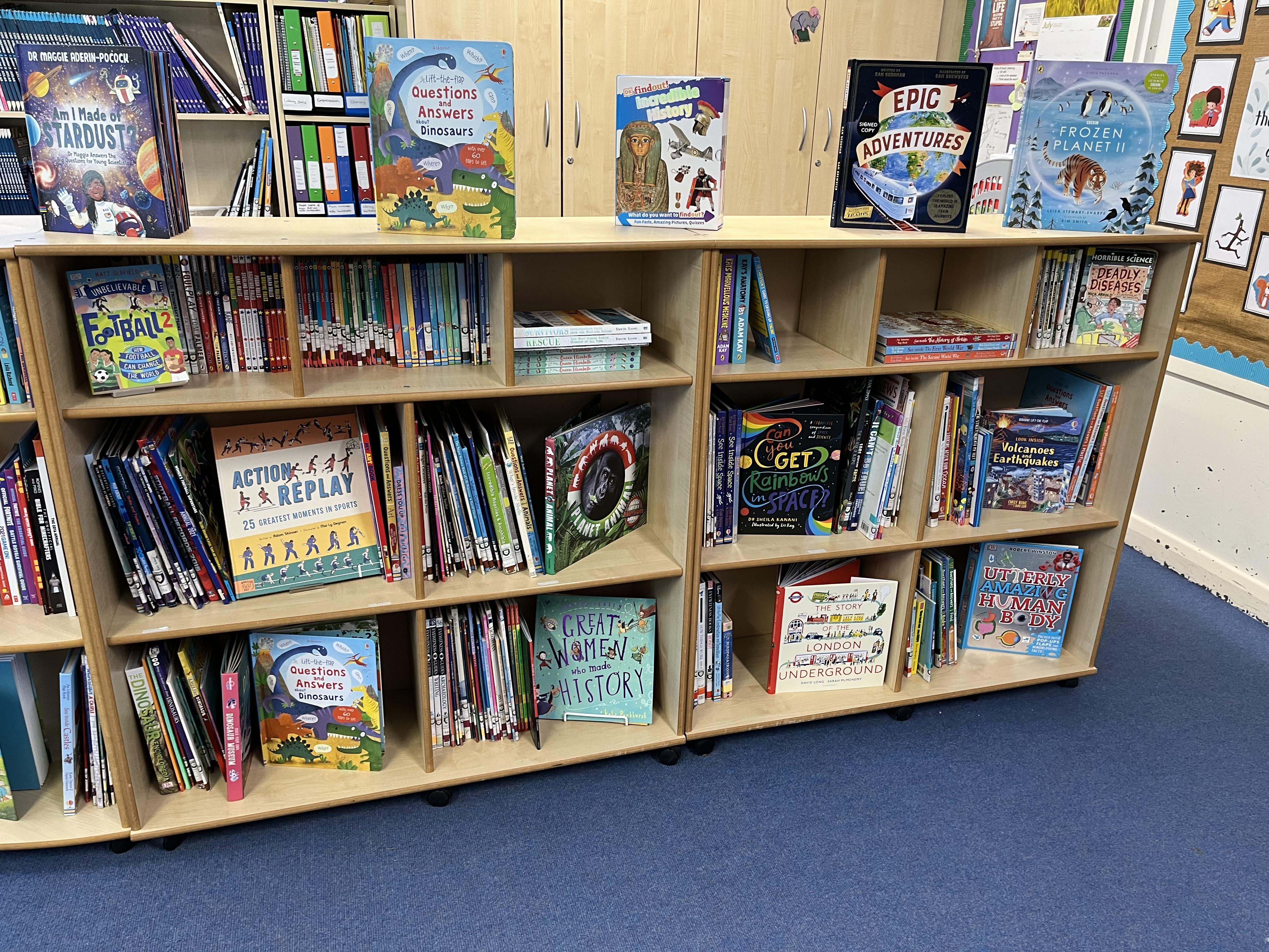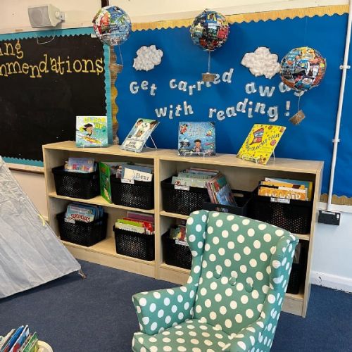 As reading is so important to us, you will see reading areas all around school, not just in the classrooms. The books in these areas are changed on a regular basis and are often linked to a subject or a theme. In each classroom, there is a dedicated book corner with a wide range of high quality literature suitable for that year group. Children are encouraged to use these book corners each day.