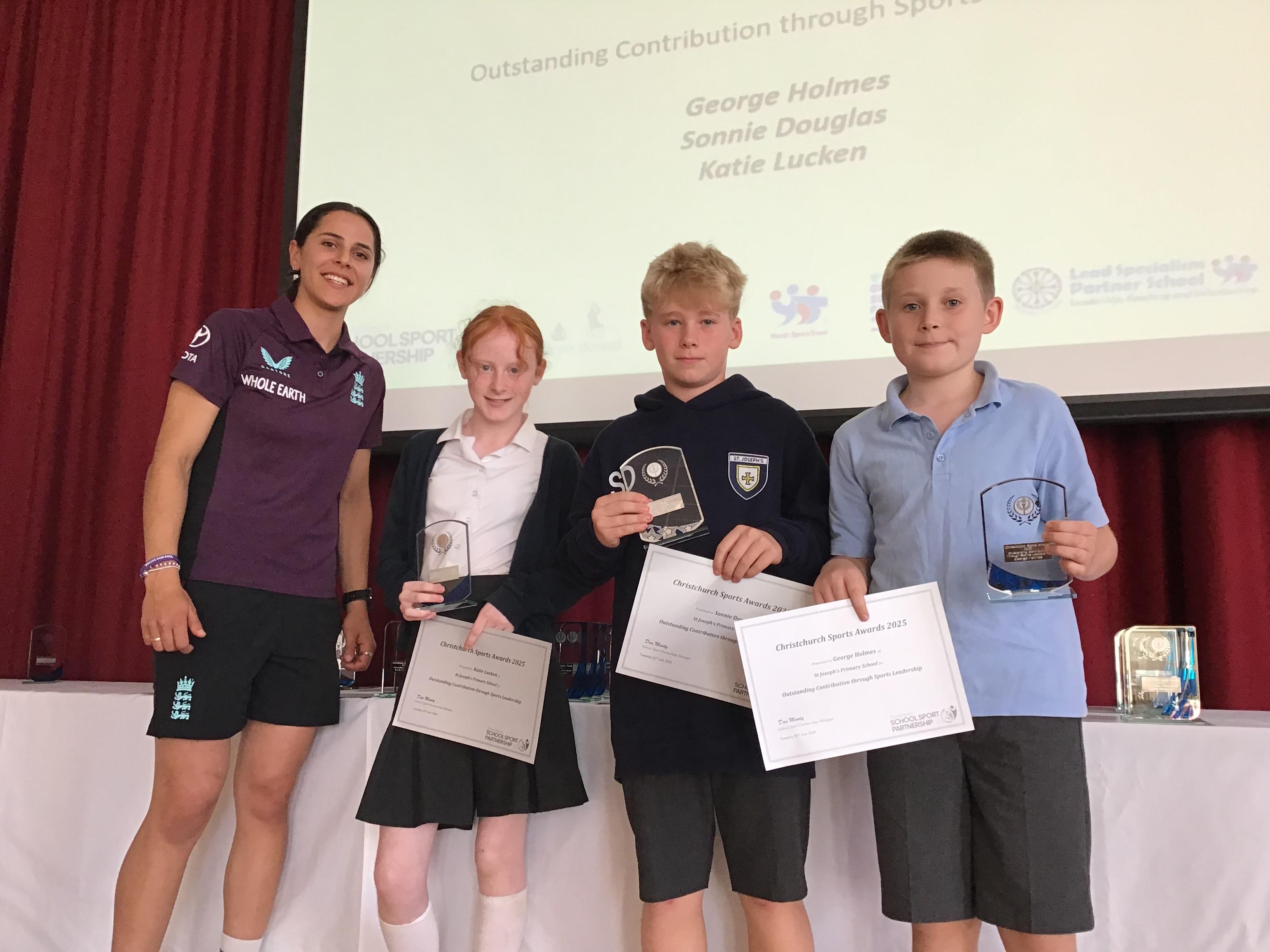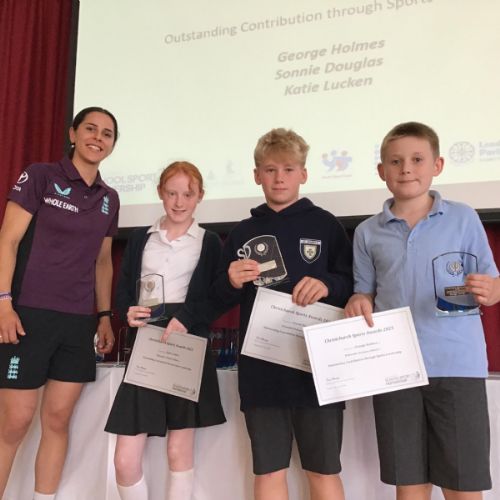 At the end of July, students from schools around the area came together to celebrate their achievements in sport at the Christchurch Sports Awards, held at The Grange. We are delighted that six of our Year 6 pupils were nominated for an award thanks to their sporting achievements and leadership. They were excited to receive their awards at the prestigious event, meeting England Cricketer Maria Bouchier. Well done to our Year 6 award winners!
